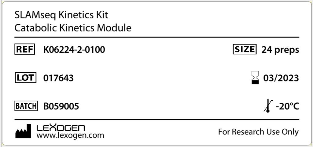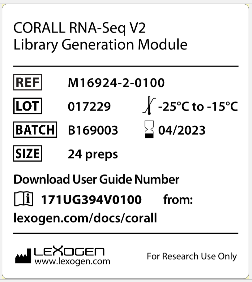 A new Lexogen Product Label with User Guide Number and Link.