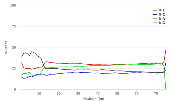 Figure 2 | FastQC Per Base Sequence Content profile for QuantSeq FWD-UMI library pool sequenced on NextSeq 500.