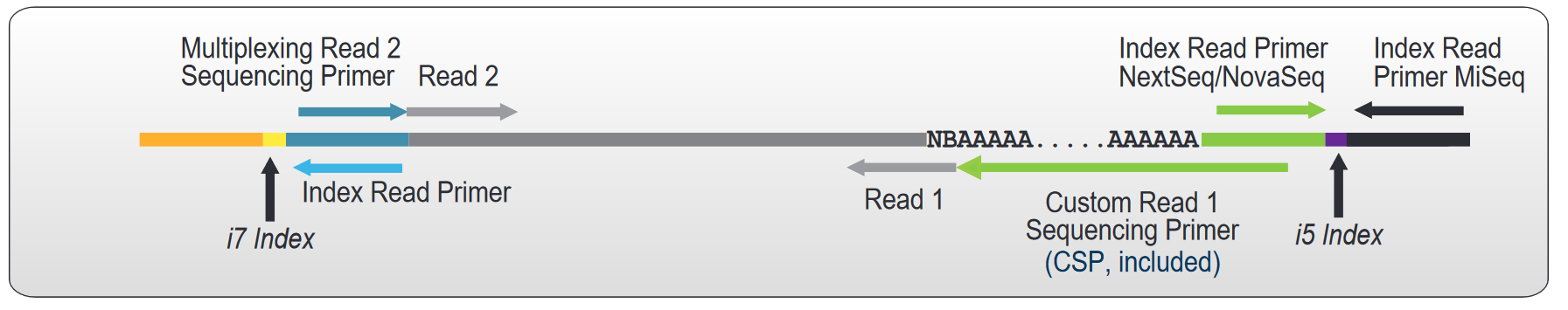 A Custom Sequencing Primer (CSP, included in the kit) is required for sequencing QuantSeq REV libraries, to avoid sequencing the poly(T) stretch at the start of Read 1. This enables Read 1 to begin at the exact 3' end of the transcript.